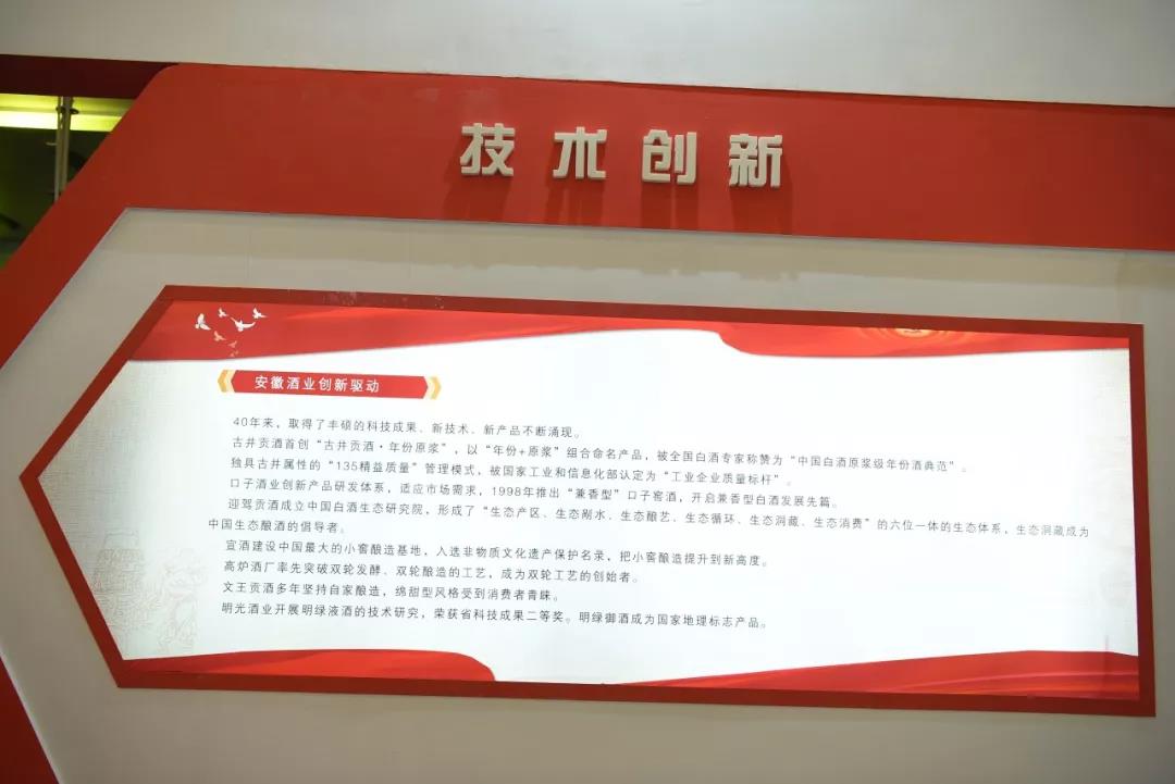 在此次酒博會上,不僅能夠通過更加生動、直觀的畫面感受安徽酒業(yè)40年的巨大變化,更能體會到改革開放40年來,安徽酒業(yè)在五大制造(智能制造、高端制造、精品制造、綠色制造、服務性制造)方面不斷取得的創(chuàng)新和突破。