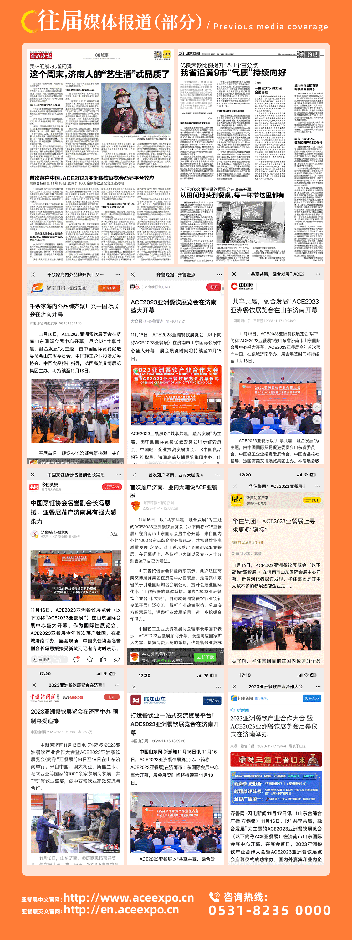 ACE亞餐展是由山東省貿(mào)促會(huì)與濟(jì)南市政府共同引進(jìn)的國(guó)際化高端餐飲業(yè)品牌展會(huì),由世界三大會(huì)展主辦集團(tuán)之一的法國(guó)高美艾博展覽集團(tuán)(Comexposium Group)傾力打造。